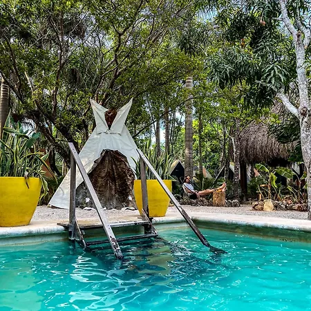 Der er en swimmingpool på det Bufo Alvarius Sanctuary Bacalar hotel.